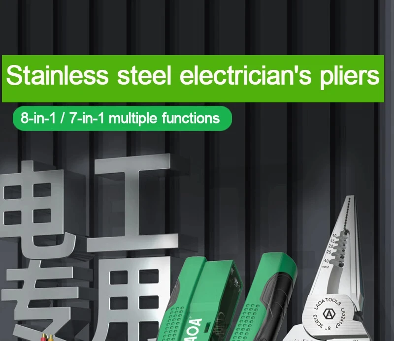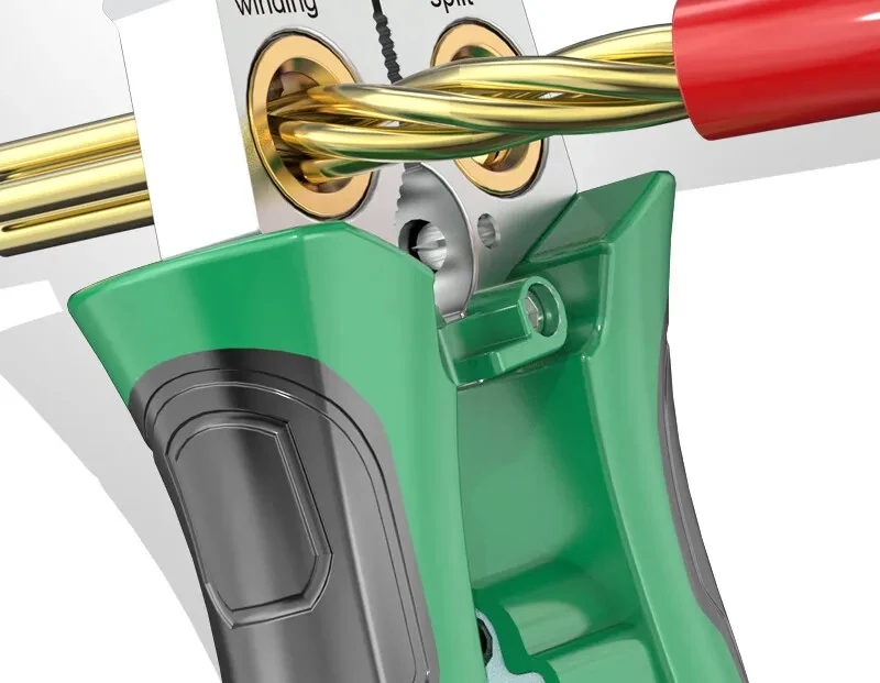 Design multifuncional: Este decapador de fios de aço inoxidável integra várias ferramentas, incluindo corte, decapagem, corte de cabos, divisão de fios, enrolamento, abertura e puxando cabos, adequados para várias operações elétricas.