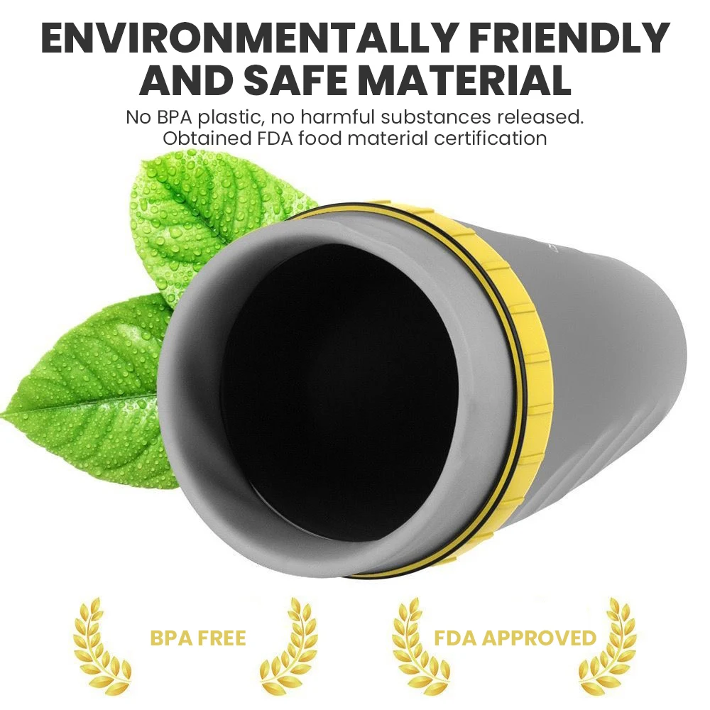 [Fácil de usar] Esta caneca é super fácil de usar, basta torcer o filme superior e assistir a um selo se formar rapidamente no topo da caneca.