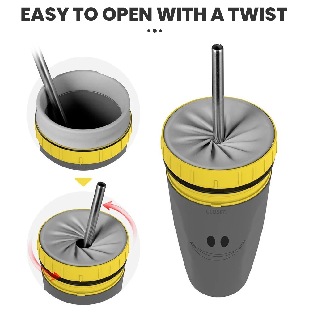 [À prova de vazamento] A membrana de silicone é ajustável, deixando espaço suficiente para um canudo passar pelo topo. Basta colocar um canudo na abertura e torcer a membrana até que o canudo se encaixe perfeitamente no lugar. Com o novo selo, o líquido não vai cair da caneca.