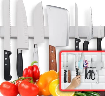 Você já se sentiu frustrado por não conseguir encontrar facilmente suas facas na cozinha? É difícil mantê-las organizadas e seguras? O Kit de Armazenamento de Facas para Parede da Cozinha foi projetado para resolver o problema de armazenamento de facas em sua cozinha. É fácil de instalar e mantém suas facas organizadas e seguras.