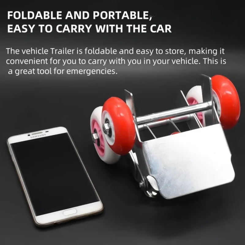 【Material】: O reboque de emergência movente de pneu da motocicleta é feito dos materiais de aço e borracha da roda, que é resistente e durável, com polias resistentes ao desgaste e uma grande capacidade do rolamento da carga.